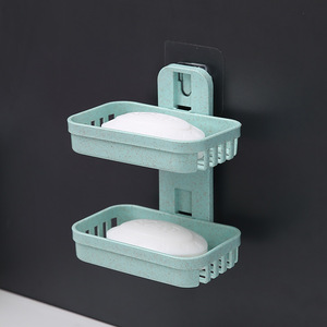 トイレの水を切って壁掛けの浴室の棚の石鹸の箱の二重の穴を開けない石鹸の箱の吸盤の石鹸の棚のアイデアを置きます。
