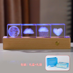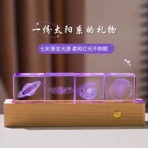 角型水晶置物小夜灯誕生日プレゼント3d内彫刻銀河太陽系創意デスクトップ水晶小夜灯