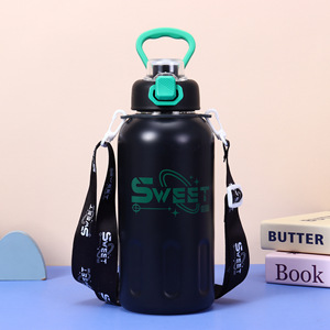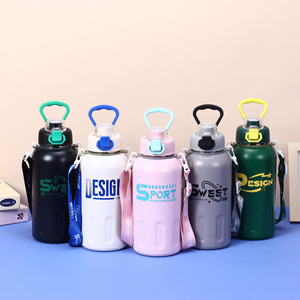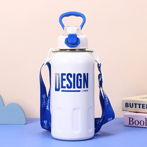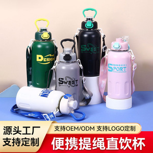国境を越えた新型304ステンレス保温カップ高颜値大容量ハンドルポット携帯ロープ付きストレート飲料カップ