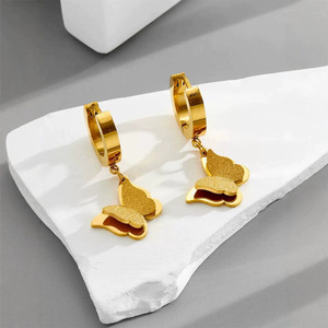 チタン鋼製ファッション18K金メッキ蝶モチーフ万能イヤリング、韓国風つや消しキュートで甘いイヤリング