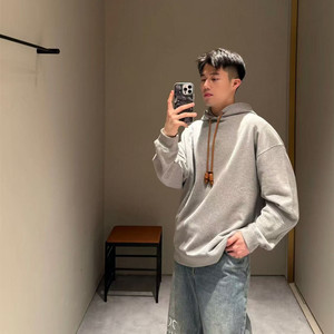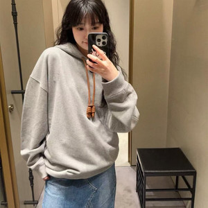 羅家LOEの新型の皮の標識は帽子の衛衣の灰色の小さい刺繍の春秋の頭の男の同項のゆったりしている国境を越えて生放送します。