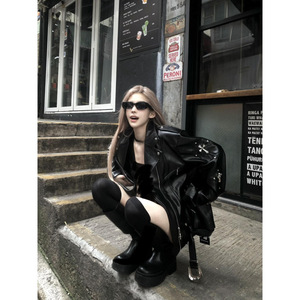 韓国版ギャル風ゆるいジッパー式クロスデザイン感コート女性春新作シンプルなジャケット