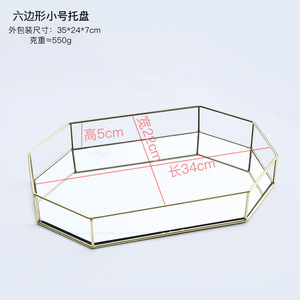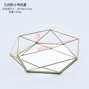 ヨーロッパ式の軽い豪華な幾何学の金属の円形の長方形の鏡面のトレーの置物の客間のデスクトップの化粧品の金属の工芸品