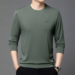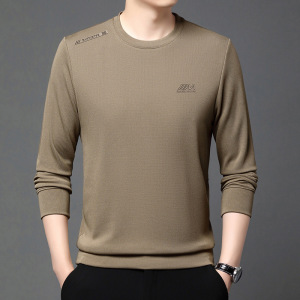 2025春の新型男性長袖tシャツカジュアルなインナーシャツを着て、アルファベットの丸首ファッションのセーターを印刷します。