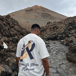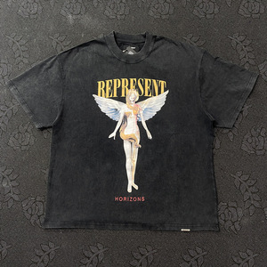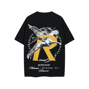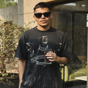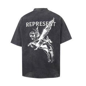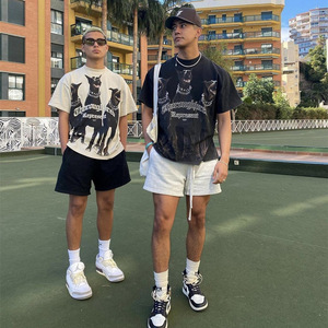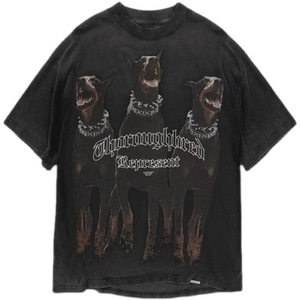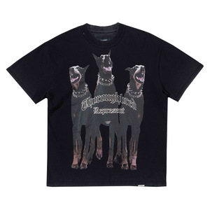 Represrep杜賓犬水洗いして古いアメリカのファッションブランドのヴィンテージのレトロなサメの半袖のtシャツの男をします。