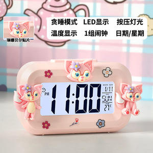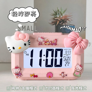 かわいいハローティー夜光ミニ時計学生寮多機能デスクトップ時計時間静音時計