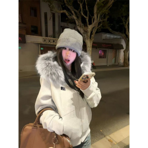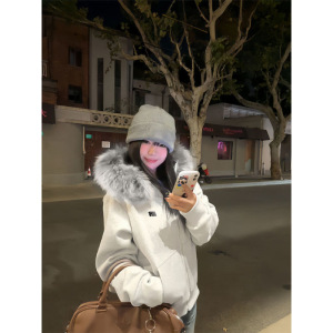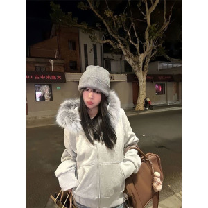【739人コレクション】秋冬毛のふわふわしたつばの文字刺繍帽子付きの女性のアメリカのレトロなカジュアル百