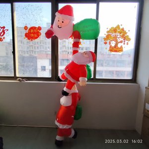 国境を越えて2メートル3人のサンタクロースが壁に登ってクリスマスの屋外の飾りを入れる