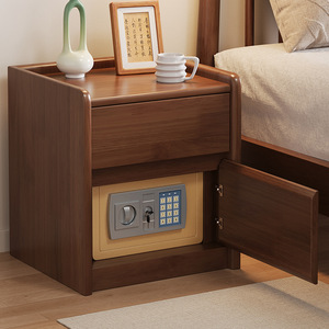 実木ベッドの頭箱金庫一体小型知能指紋付きパスワード金庫は寝室のロッカーを設置しない