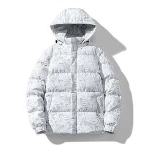 冬の男性の新型防風綿入れのゆったりとした純色の帽子付き綿入れの厚い保温の大きいサイズのカップルの帽子付きコート