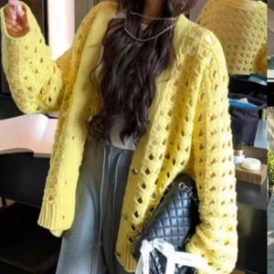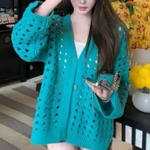 外国貿易の透かし彫りのニットの女性の秋の2025新型のゆったりしたセーターのコートの復古的な長袖のカーディガンの上着