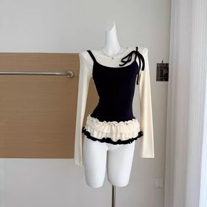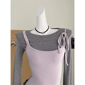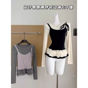 2025韓国版のデザイン感の偽の2つのレースのベストは底の長袖のtシャツの女性の金の春秋の中で身を修める上着を掛けます。