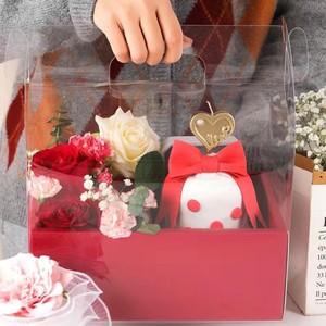ホリデーフラワーケーキギフトボックス透明バレンタインデー520レッドポータブルフラワーケーキボックスお土産ペストリーボックス