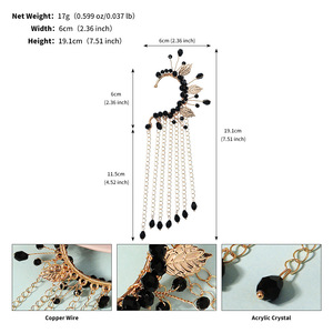 欧米の個性的な黒い水晶の玉の耳掛けの金色の葉の軽い豪華な耳の骨は復古のダンス会のパーティーのフリンジの耳飾りを挟みます。