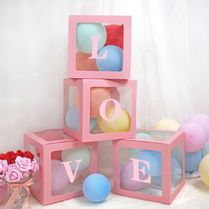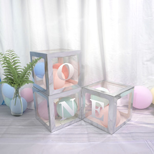 26文字の透明な白い風船の箱の装飾の誕生日のパーティーの告白のONE赤ちゃんの満1歳の場所のシーンの配置