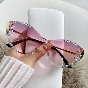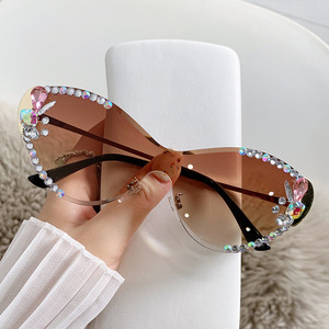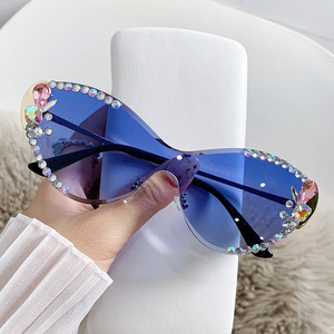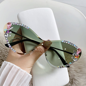 豪華な金属のダイヤモンドの女性のサングラスのカラードリルの潮流のパーティーのサングラスの縁なしの縁切りのワンピースの形のメガネ