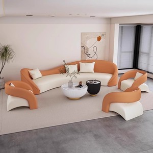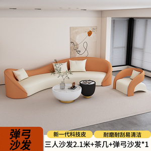 3人掛けソファ2.1m+コーヒーテーブル+スリングショットソファ*1 [オレンジ+ホワイト]
