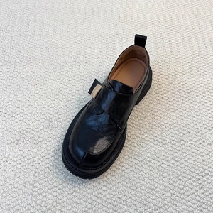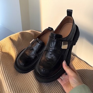 黒のJK風レザーシューズ レディース 2025年春 厚底 ラウンドトゥ 韓国風 マジックテープ ローファー 厚底ヒール ディープカット レトロ