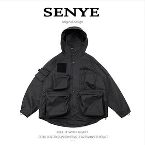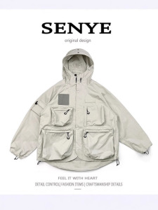 高街山系アウトドアジャケット男女カップル服機能突撃服ポケットフード付きカジュアルゆったりコート