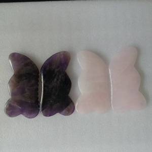 メーカー卸売り天然紫水晶粉晶玉元宝形歯付き美容マッサージスクレーパー