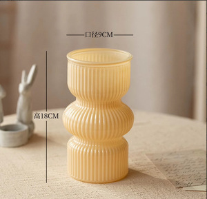 シングルレトロ翡翠色縦模様ガラス花瓶