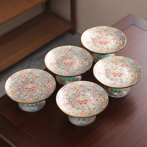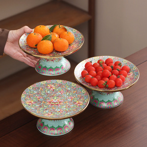 エナメル中国式果物皿高足皿陶磁器間食菓子皿皿皿皿家庭用献上皿