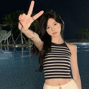 夏のストライプは色にぶつかって首のストラップを掛けます。