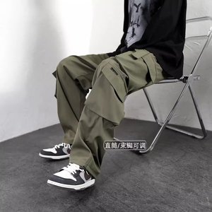 春と秋の新型のファッションブランドのストレート筒の工装のズボンの多いポケットのゆったりしている大きいサイズの運動のレジャーのストレート筒の広い足のズボンのズボン