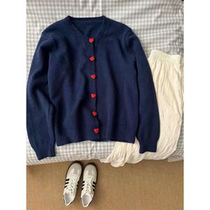 灰色の愛のボタンのセーターのコートの女性の秋の新型の高級感のゆったりした丸首のニットのカーディガンの上着
