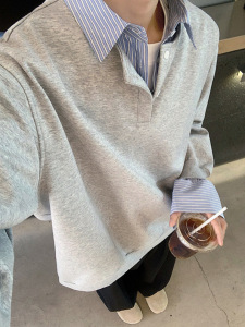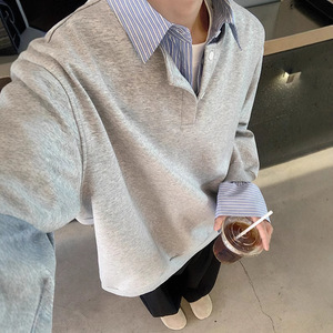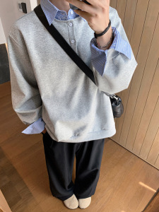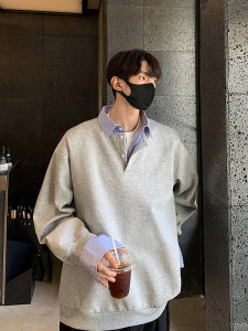 偽の2つの衝突色はシャツの襟の衛衣の男性の春の新型の長袖の襟をつなぎます。