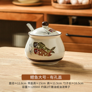コイ豚油缶陶磁器調味缶蓋付き塩缶キッチン唐辛子油缶高温油かけ辛い生臭物油缶