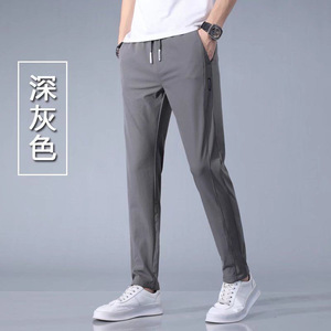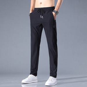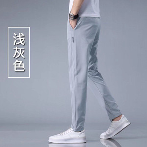 氷の糸のカジュアルなズボンの男性の中で青年の夏の薄い金のまっすぐな筒のズボンの男性のゆったりしている大きいサイズの弾力の運動の衛のズボン