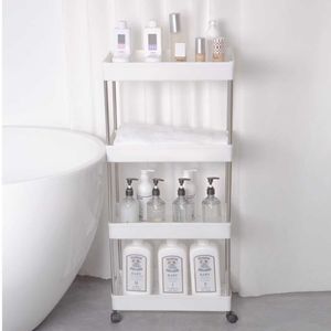 【多機能プーリー棚】調味料棚キッチンの隙間を利用して寝室の浴室のトイレに収納します。