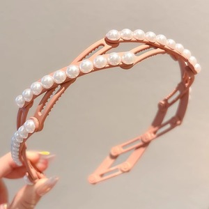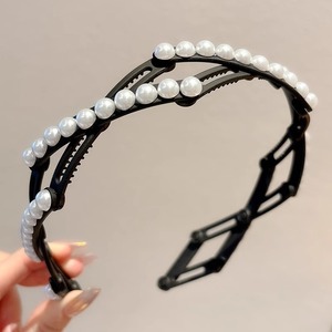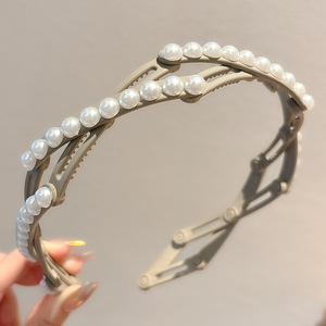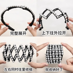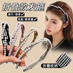 旅行携帯伸縮折りたたみカチューシャ女性高級感軽豪華真珠カチューシャ洗顔滑り止め圧髪カチューシャ髪飾り