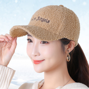 秋冬季新款棒球帽女士帽子保暖泰迪绒百搭显脸小出行防晒遮阳字母