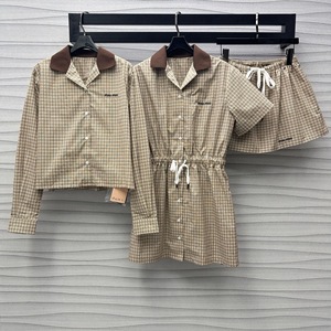 Mm家25ss春夏新作チェック柄長袖シャツチェック柄引き紐ハーフスカートチェック柄ワンピース