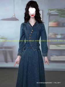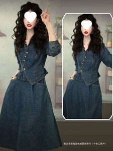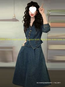 気質の優雅なファッションのデニムのワンピースの秋の2025新型の婦人服のきれいなお母さんの偽の2つのスカート