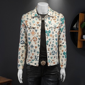 ヨーロッパ駅2025男秋装新ジャカード襟ジャケット男7519-長期有品