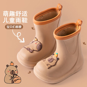 カピバラ子供雨靴中筒耐摩耗滑り止め幼稚園子供水靴男の子女の子漫画かわいい雨靴