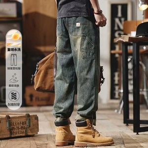 アメリカのレトロなジーパンの男性2025の新型の春と秋のゆるいストレートの水洗いは古いレジャーの仕事のズボンをします。