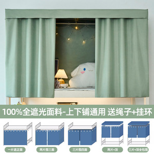 寮の遮光ベッドのカーテンの上に厚い純色のスライドレールの蚊帳を敷いてテーブルのカーテンを遮ります。