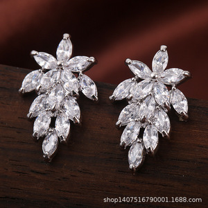 日本と韓国の新しいスタイルのジルコン 925 シルバー針イヤリング白ガーゼブライダルアクセサリーイブニング気質ファッションブライダル多用途イヤリング