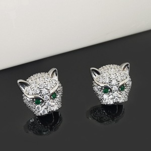 23-ヒョウヘッド象嵌ジルコニウムスタッドピアス-シルバー