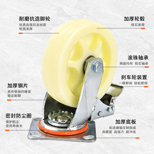 ナイロンキャスター、ヘビーデューティー、ライトデューティー、多様な仕様、ブレーキ付き、静音、耐摩耗性、耐圧性、大型方向転換ホイール、ブレーキホイール