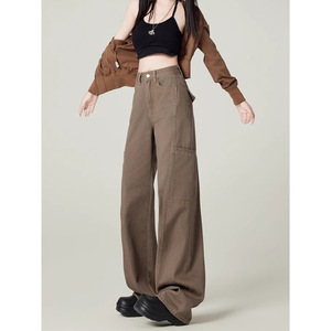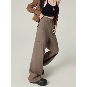2025春の新型文芸レトロなカレー色の美ラードのジーパンの女性のゆるいカジュアルなズボンのデザイン感のある工装のズボン