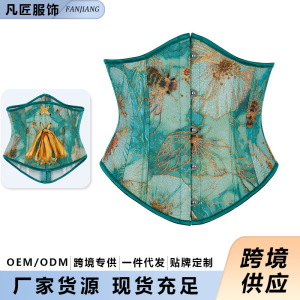 クロスボーダーの新型のベルトの油絵の小さいハチのジャカードの魚の骨の腰のシールは腹の短い上着の鋼鉄のボタンを収めて外に着ます。