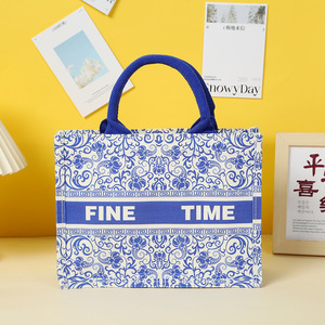 2025新型国風油絵フェルトトートバッグ女性高級感大容量プリント通勤レジ袋