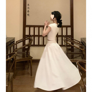 ヘボン風フレンチスーツ女性スリム半袖tシャツ夏の大きいスカートのスカートの半身のスカートの気質の2つのセット