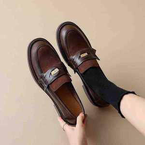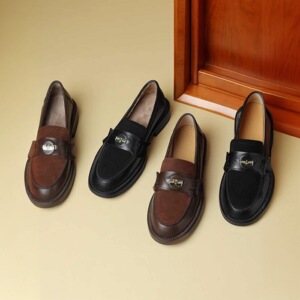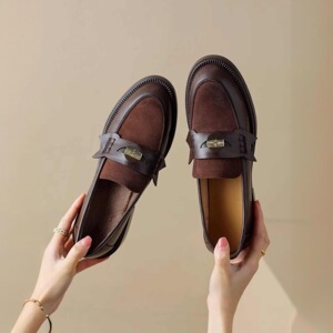 【在庫あり】2913 ソフトレザー フレンチレトロ ゴールドコイン ブリティッシュスタイル スリッポン レディース ローファー シューズ 春