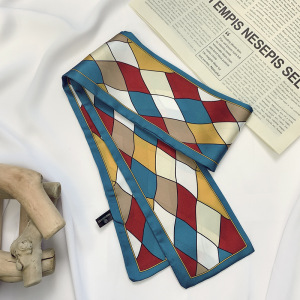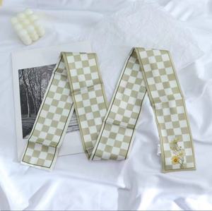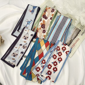 春夏の新型の花のシルクタオルの韓系の百合の長い条は髪を結んで包みます。